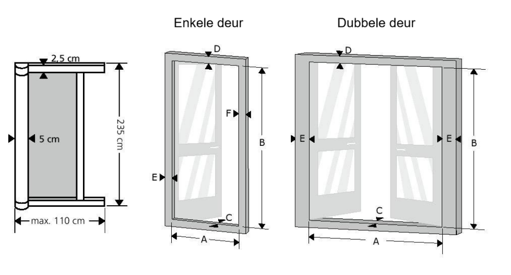 de minimale/maximale overlap op het deurkader. - Met de onderstaande berekeningen wordt het vliegenraam strak rond de deuropening geplaatst.