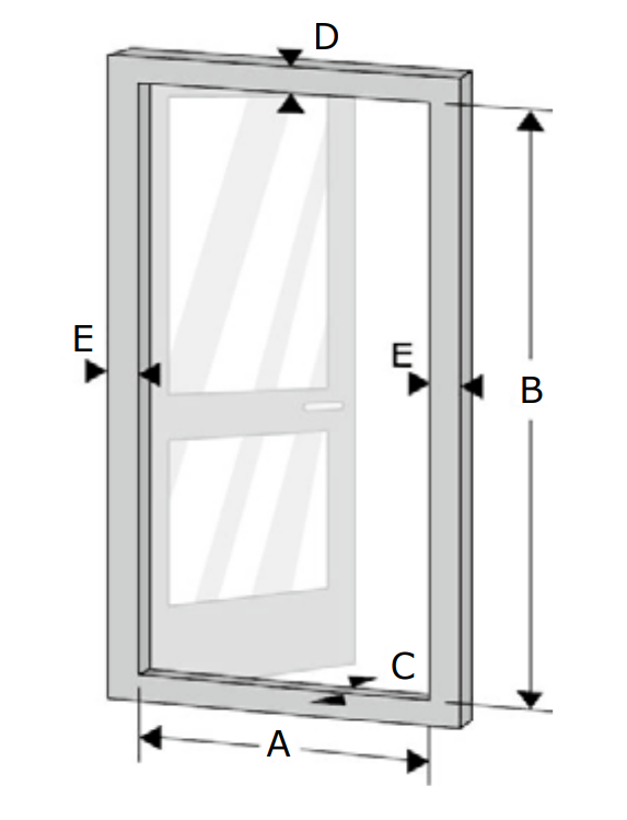 - Deurkaderzijde scharnierende kant (E) minimaal 36 mm voor de plaatsing van het