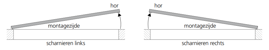- Bepaal aan welke kant de scharnieren moeten komen (vliegendeur opent van u af)