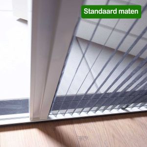en zwart geplisseerd gaas biedt deze vliegendeur een eenvoudige en effectieve oplossing voor uw deur.